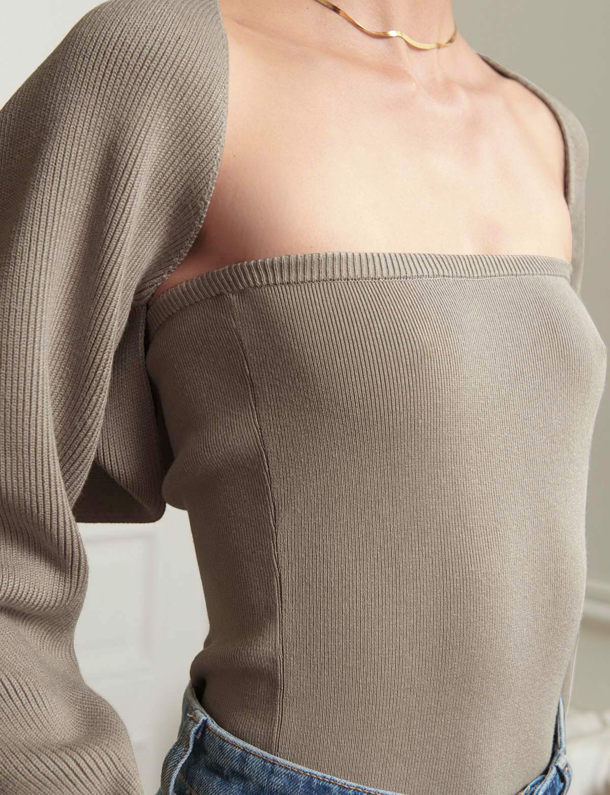 Two-Piece Knit Top with Shrug in Pebble -BESTSELLER