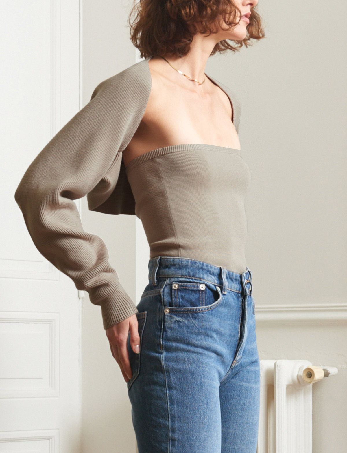 Two-Piece Knit Top with Shrug in Pebble -BESTSELLER
